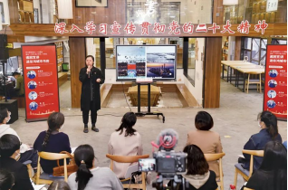 2022年11月18日,浙江省“六學(xué)六進六爭先”巡回宣講團走進桐鄉(xiāng)市開發(fā)區(qū)(高橋街道)伯鴻城市書房,以沙龍訪談的形式,向群眾宣傳黨的二十大精神。桐鄉(xiāng)市委宣傳部供圖