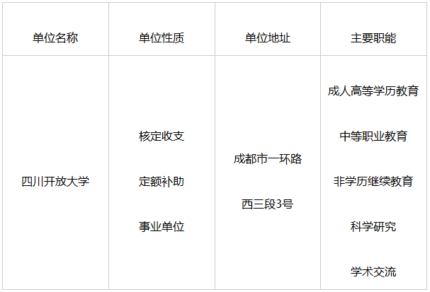 四川開放大學(xué)(以下簡稱學(xué)校)于2020年12月,經(jīng)省人民政府批復(fù)同意,由原四川廣播電視大學(xué)更名成立。四川開放大學(xué)是省政府舉辦,以促進(jìn)終身學(xué)習(xí)為使命、以現(xiàn)代信息技術(shù)為支撐、以“互聯(lián)網(wǎng)+”為特征,面向社會(huì)成員開展以開放教育為主體的學(xué)歷和非學(xué)歷繼續(xù)教育的省屬新型高等學(xué)校。主要承擔(dān)服務(wù)我省全民終身學(xué)習(xí),推進(jìn)四川開放教育體系建設(shè),探索高等教育、職業(yè)教育與繼續(xù)教育融合發(fā)展的職責(zé)。