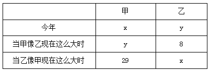 例1:甲、乙兩人年齡不等,已知當(dāng)甲像乙現(xiàn)在這么大時(shí),乙8歲,當(dāng)乙像甲現(xiàn)在這么大時(shí),甲29歲,問今年甲的年齡為多少歲( )?