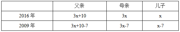 例1:一家三口,父親的年齡比母親大10歲,2009年,父親的年齡是兒子的9倍,2016年,母親的年齡是兒子的3倍,則母親的出生年份為:( )