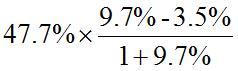 思路點撥:混合增長率介于兩部分增長率之間。
