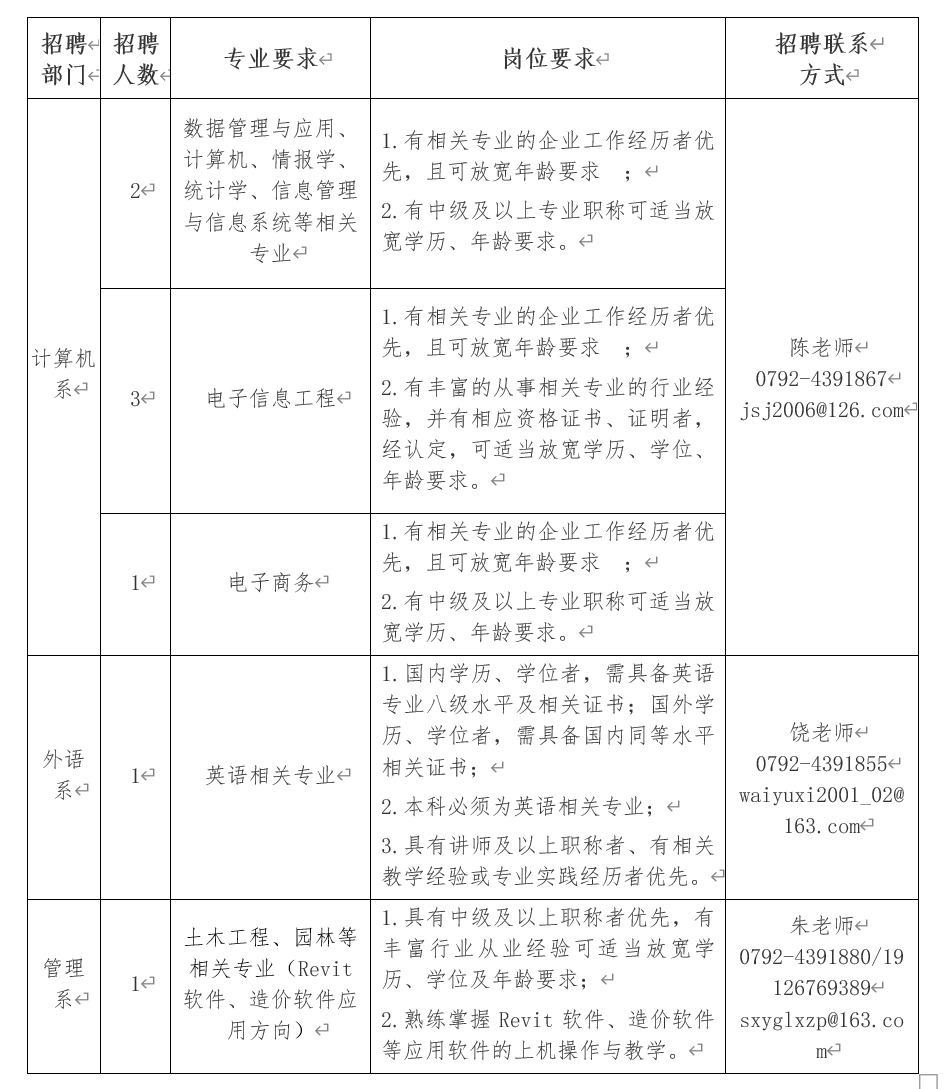因?qū)W院教育事業(yè)發(fā)展需要,現(xiàn)面向社會(huì)公開(kāi)招聘教學(xué)崗人員若干,具體如下: