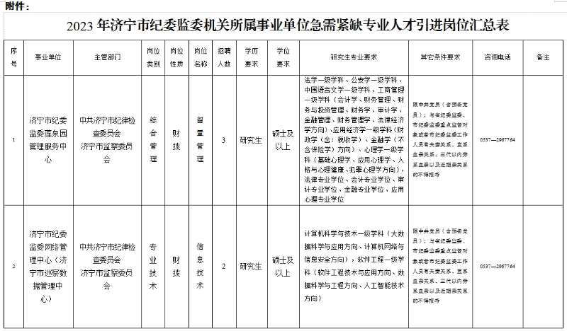 附件:2023年濟(jì)寧市紀(jì)委監(jiān)委機(jī)關(guān)所屬事業(yè)單位急需緊缺專業(yè)人才引進(jìn)崗位匯總表