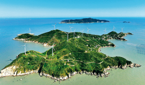 圖為2023年11月1日,浙江省舟山市嵊泗縣東綠華島,風(fēng)電機(jī)組正源源不斷地輸送綠色電能。人民圖片 姚峰/攝