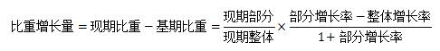 根據(jù)公式,我們可以清晰的判斷,如果部分增長率>整體增長率,則比重增長量為正,即比重上升,反之亦成立。