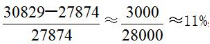 【答案】C【解析】根據(jù)材料第三段,2011年參保職工21565萬人,比上年末增加2163萬人,年末全國參加城鎮(zhèn)基本養(yǎng)老保險(xiǎn)人數(shù)為28391萬人,比上年末增加2684萬人,所求占比為