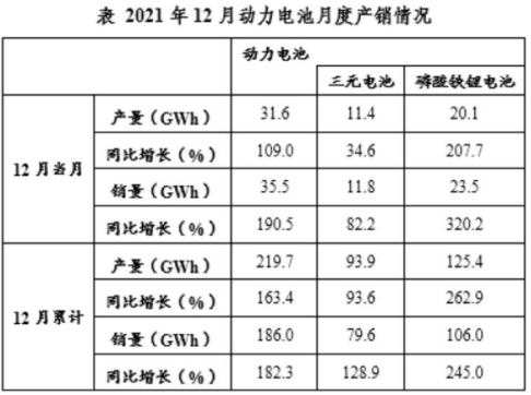 問題:2021年12月,磷酸鐵鋰電池當(dāng)月產(chǎn)量占全年動力電池產(chǎn)量的比重約為:( )