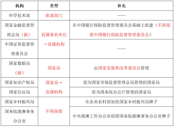 ①主要機構(gòu)變化: