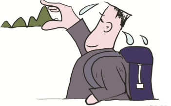 一位背著包的人,滿頭大汗,用手丈量著遠(yuǎn)方的高山,從他的角度高山看著很小,一只手就能比劃過來。但是實際上這是距離太遠(yuǎn)產(chǎn)生的錯覺,山的高遠(yuǎn)不是一只手可以丈量的,到達(dá)山頂,還有很長的路要走,漫畫中的人雖然滿頭大汗很努力,但是沒有講求科學(xué)的方法,仍然會偏離目標(biāo)。因此,我為這幅漫畫起的三個標(biāo)題是《有科學(xué)的工作方法》、《眼見未必為實》、實踐是檢驗真理的唯一標(biāo)準(zhǔn)》。