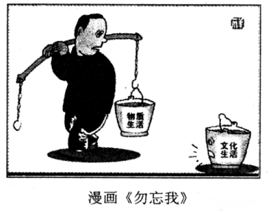 【例題】漫畫是一個人挑著扁擔(dān)后面是物質(zhì)生活,然后有一個同事問:“文化生活呢?”文化生活被扔在了地上。據(jù)此談?wù)勀愕睦斫狻?/span>