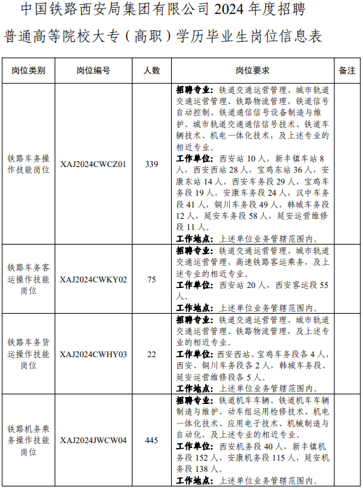 中國(guó)鐵路西安局集團(tuán)有限公司2024年度招聘普通高等院校大專(高職)學(xué)歷畢業(yè)生公告