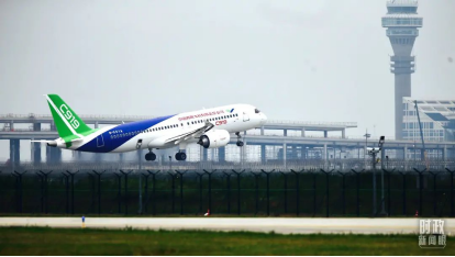 △2017年5月5日,國產(chǎn)大飛機(jī)C919成功首飛。(總臺國廣記者李晉拍攝)