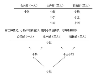 第二種情況,小楊不在銷售部,則對小李沒要求,可得結(jié)果如下: