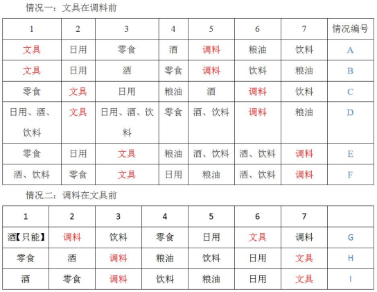(4)日用品類緊挨在文具類前一排或者后一排。【日用品和文具挨在一起】