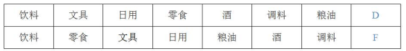 D.日用品類、文具類、零食類、酒類、糧油類、調(diào)料類,飲料類