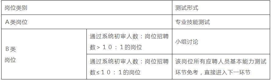 暫定2023年12月下旬進行,具體時間和地點以準考證為準?;灸芰y試主要采取專業(yè)技能測試、小組討論等形式,對應聘人員進行考察。各崗位具體考核形式見下表: