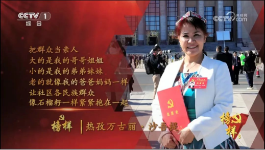 熱孜萬古麗·沙吾提是一名維吾爾族黨員,20年如一日堅(jiān)守在社區(qū)黨委書記崗位。她真情服務(wù)群眾,辦好暖心實(shí)事,努力把工作做到老百姓的心坎兒上。她堅(jiān)持把維護(hù)民族團(tuán)結(jié)作為社區(qū)最大的事,扎實(shí)開展民族團(tuán)結(jié)“細(xì)胞工程”創(chuàng)建和民族團(tuán)結(jié)一家親活動,讓中華民族共同體意識深深根植在居民心中。她說“社區(qū)是我們共同的家,我要永遠(yuǎn)把各族居民當(dāng)作自己的親人,讓社區(qū)成為群眾最放心、最安心、最舒心的港灣”。