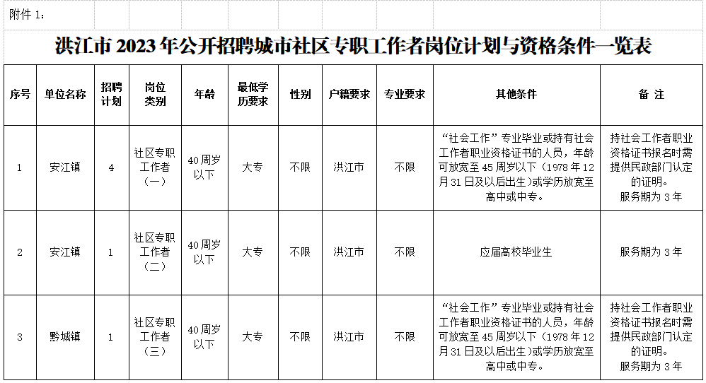 附件1.洪江市2023年公開招聘城市社區(qū)專職工作者崗位計(jì)劃與資格條件一覽表