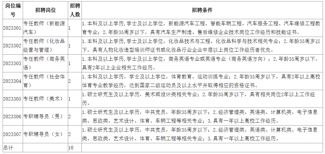 本次招聘人員為編外聘用合同制人員,其中教師6人,輔導員4人。