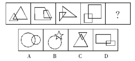 【答案】D【解析】已知的四個(gè)圖形都是存在相交,而選項(xiàng)也都是相交,故單純的看相交無(wú)法確定答案,對(duì)比四個(gè)圖發(fā)現(xiàn)每組兩個(gè)圖形相交部分都與兩個(gè)圖形形狀相同,故答案選D。