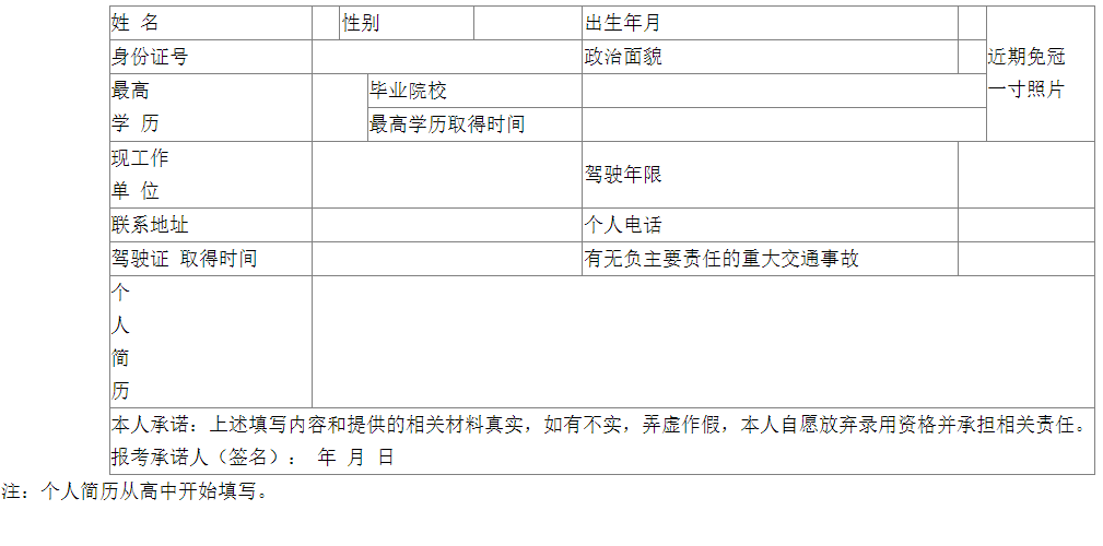 金東區(qū)紀委區(qū)監(jiān)委公開招聘駕駛員報名表