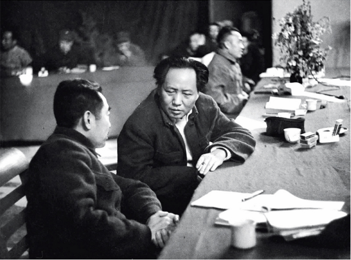 1945年召開的黨的七大,確立毛澤東思想為黨的指導(dǎo)思想,使全黨在思想上政治上組織上達(dá)到空前統(tǒng)一和團(tuán)結(jié)。圖為毛澤東、周恩來、朱德同志在七大主席臺(tái)上。新華社發(fā)