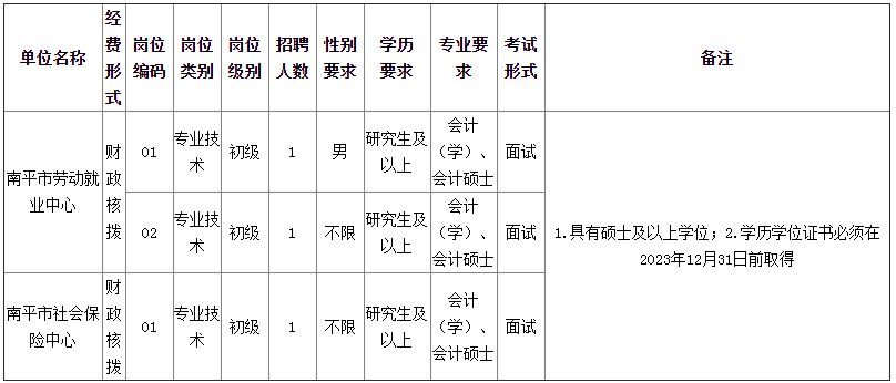 2023年南平市人社局直屬事業(yè)單位緊缺急需專業(yè)人員招聘公告