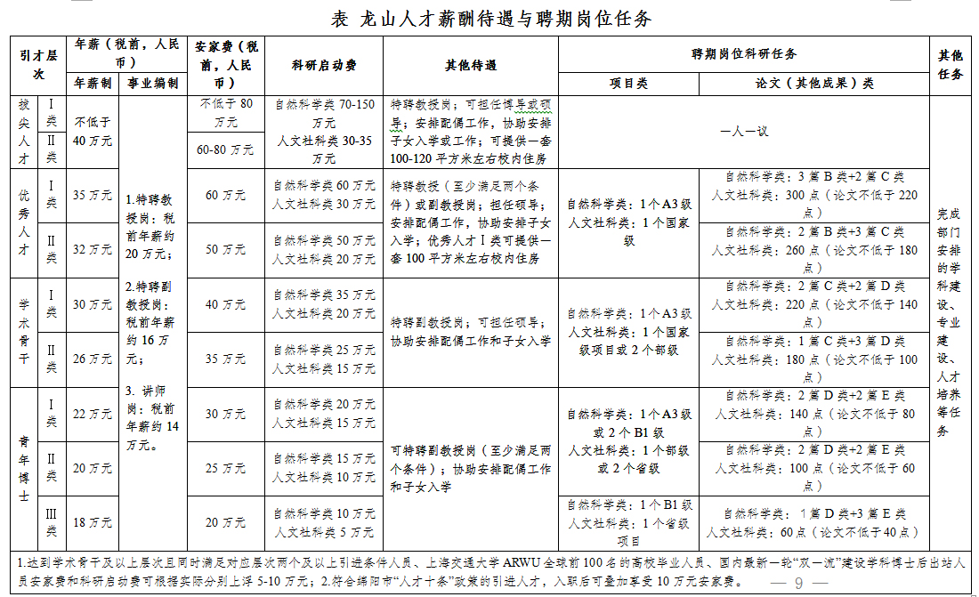 學(xué)校龍山人才引進(jìn)分為六個(gè)層次,具體條件如下: