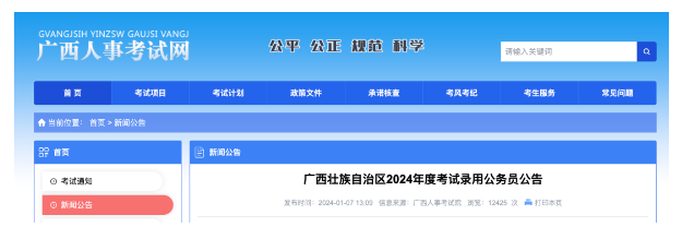 《廣西壯族自治區(qū)2024年度考試錄用公務(wù)員公告》