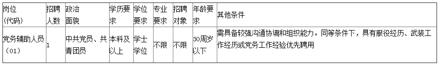 根據(jù)工作需要,中國人民解放軍廣東省清遠(yuǎn)市清城區(qū)人民武裝部面向社會公開招聘人民武裝專項(xiàng)工作人員(聘員)1名,具體崗位如下: