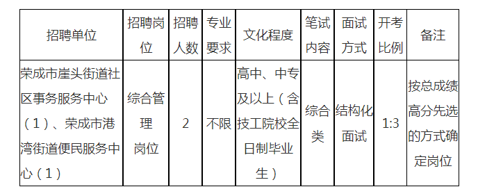 招聘信息發(fā)布網(wǎng)站:榮成市人民政府門戶網(wǎng)站(http://www.rongcheng.gov.cn/)“公示公告”欄。