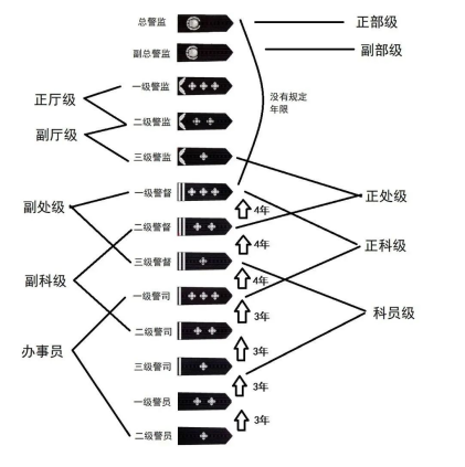 警察執(zhí)法勤務(wù)職級與公務(wù)員綜合類的情況基本一致,如高級警長相當于調(diào)研員;警長相當于主任科員。任職的年限也基本一致,二級高級警長提拔以及高級警長需要3年,一級高級警長提拔二級警務(wù)專員和二級警務(wù)專員提拔一級警務(wù)專員需要4年外,其他的提拔均是2年。