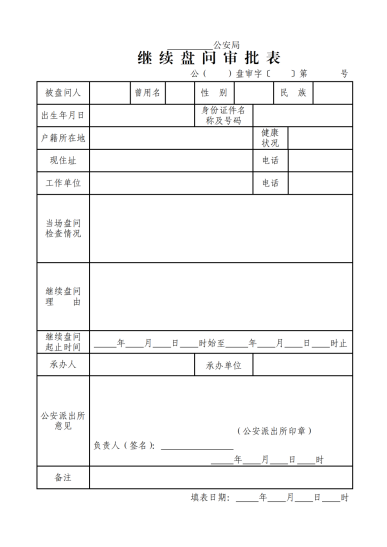 《繼續(xù)盤問審批表》