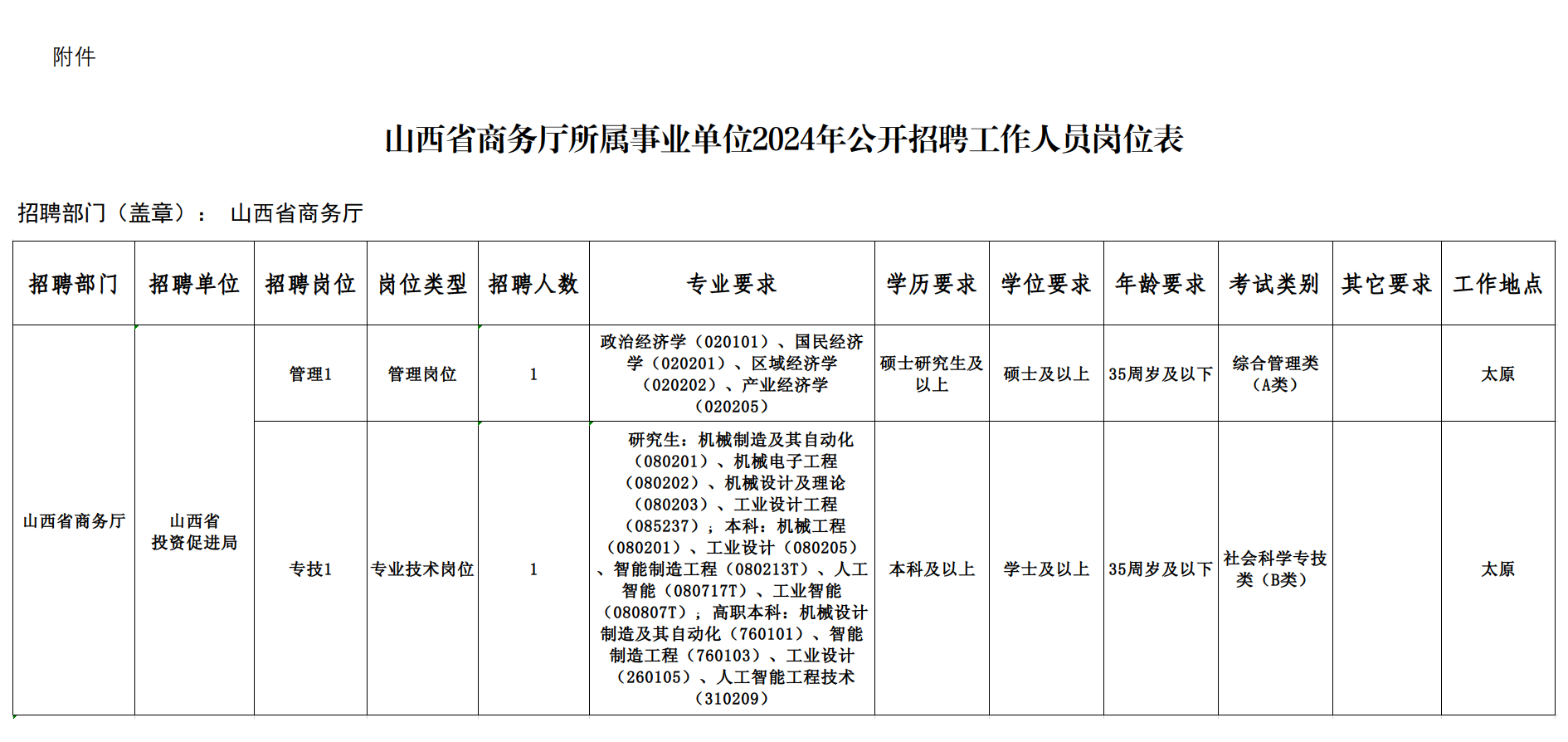 附件:山西省商務(wù)廳所屬事業(yè)單位2024年公開招聘工作人員崗位表