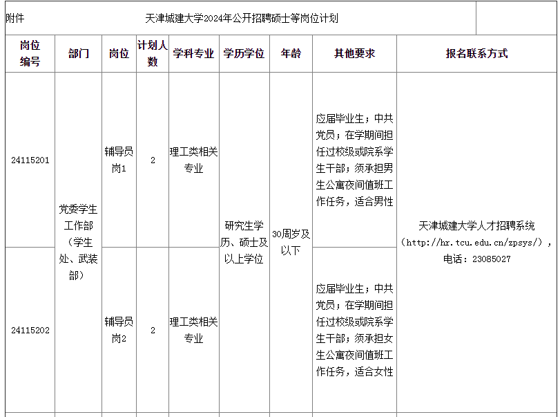 附件:天津城建大學(xué)2024年公開(kāi)招聘碩士等崗位計(jì)劃