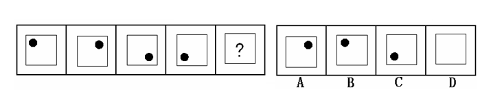?。ù鸢福築。黑點(diǎn)在正方形中順時針移動。在第5個圖形中,應(yīng)該正好移動到左上角。)