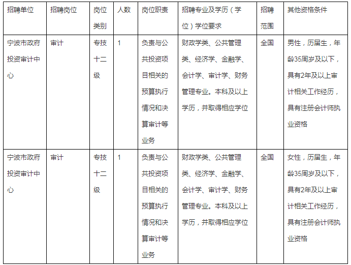 寧波市審計(jì)局下屬事業(yè)單位公開招聘事業(yè)編制工作人員公告