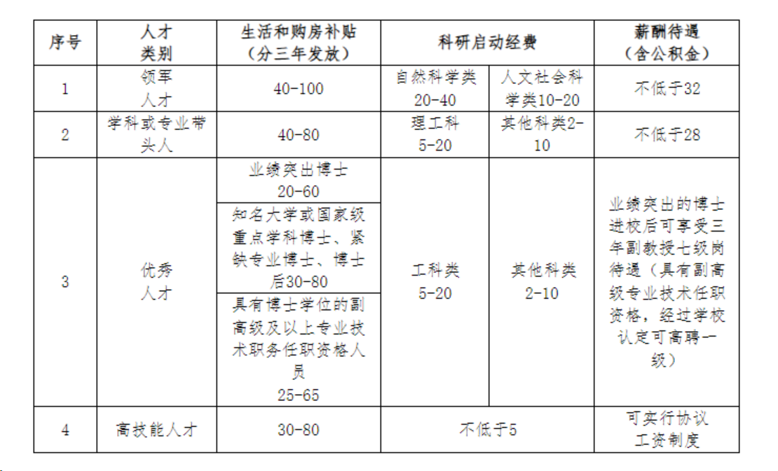 5.如果夫妻雙方都符合以上引進(jìn)條件,安家費(fèi)不重復(fù)計(jì)發(fā),可在單人標(biāo)準(zhǔn)基礎(chǔ)上上浮20%,科研啟動(dòng)費(fèi)分別計(jì)發(fā)。