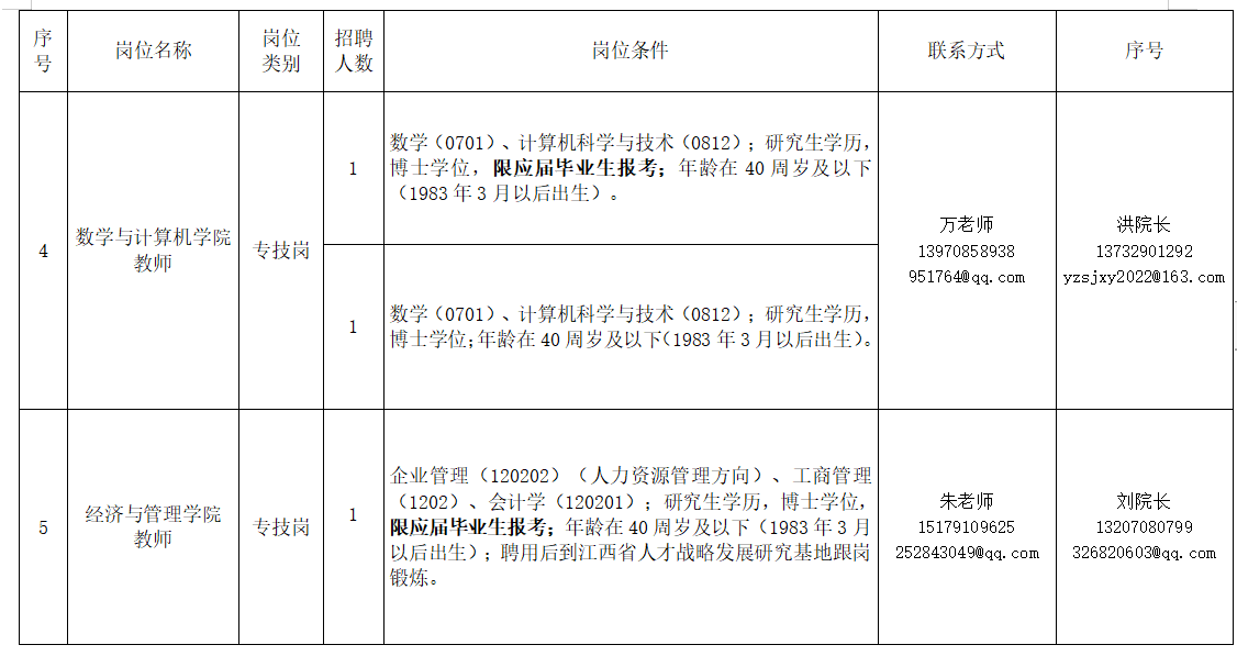 1.報名時間:從公告之日起至2024年12月31日,招滿為止。聯(lián)系人:人事處周老師,聯(lián)系電話:0791-87702569 郵箱:yzsyrsc_419@126.com