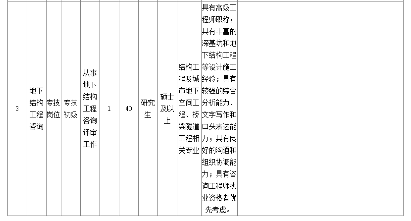 綜合交通規(guī)劃崗2名;綜合交通研究崗1名;地下結(jié)構(gòu)工程咨詢崗1名。