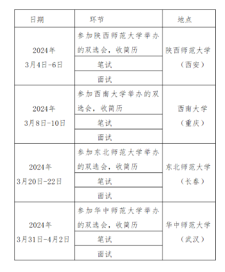設(shè)立“西安”“重慶”“長(zhǎng)春”“武漢”四個(gè)考核點(diǎn)并在各考核點(diǎn)院校雙選會(huì)現(xiàn)場(chǎng)接收簡(jiǎn)歷報(bào)名。
