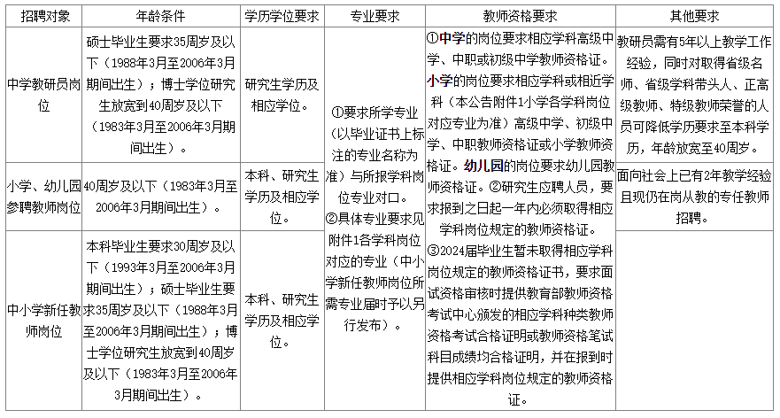 5.專業(yè)條件設(shè)置為“××類”的招聘崗位,符合《福建省機(jī)關(guān)事業(yè)單位招聘專業(yè)指導(dǎo)目錄(2024年》中“××類”所列專業(yè)的報考者準(zhǔn)予報考;專業(yè)條件設(shè)置為具體專業(yè)名稱的招聘崗位,符合所列專業(yè)(詳見本公告附表各有關(guān)崗位)的報考者準(zhǔn)予報考。對博士和留學(xué)人員的專業(yè)要求按相近原則認(rèn)定。