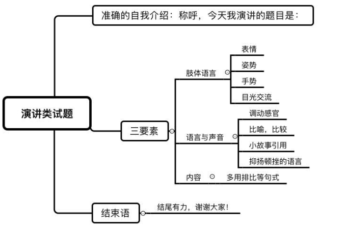 綜合分析類——演講型活動致辭/就職演講/活動演講1.準確的自我介紹:稱呼,今天我演講的題目是:2.主題鮮明3.層次清晰4.中心突出,節(jié)奏適度5.結尾有力,謝謝?家!