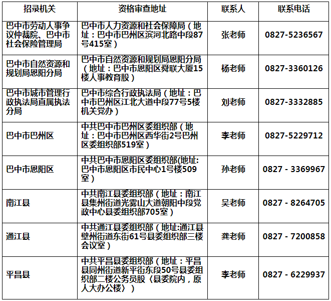 ?。ㄈ┵Y格審查所需材料報(bào)考市級(jí)部門(單位)由招錄機(jī)關(guān)具體負(fù)責(zé);縣(區(qū))級(jí)部門(單位)、鄉(xiāng)鎮(zhèn)職位由縣(區(qū))委組織部具體負(fù)責(zé)。具體地址及聯(lián)系方式如下: