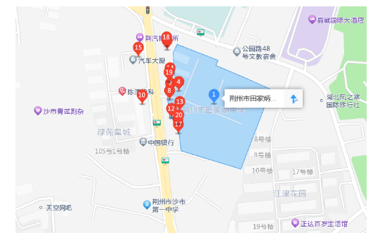 可乘坐公交車1路、12路、14路、20路、101路、103路、12路、15路、19路、21路、25路、51路等到荊州區(qū)花臺站下車,然后向南步行200米