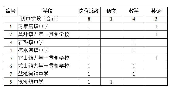 (一)農(nóng)村新機制教師崗位(初中8名):
