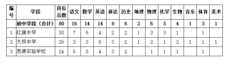 ?。ǘ﹫罂汲菂^(qū)初中教師崗位的招聘條件(含普通崗及退役軍人專崗):