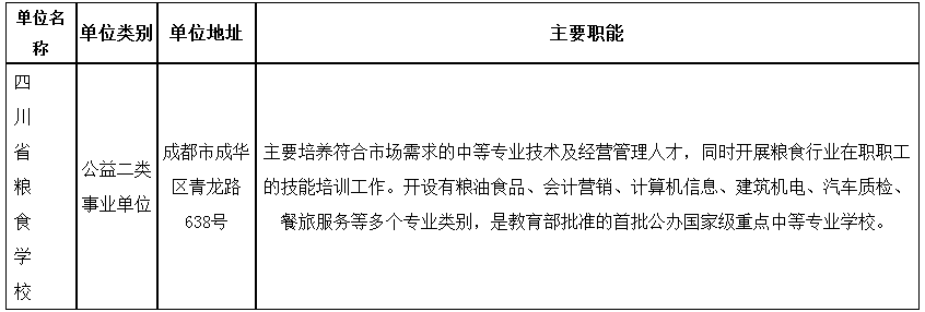 本次招聘均在事業(yè)單位經(jīng)批準設(shè)置的崗位內(nèi)招聘,四川省糧食學(xué)校招聘名額為7名,均為專業(yè)技術(shù)崗位,具體崗位見《崗位和條件要求一覽表》。