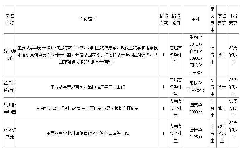 中國農(nóng)業(yè)科學(xué)院鄭州果樹研究所2024年人才招聘公告