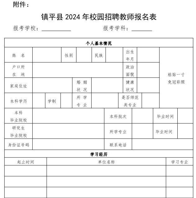 附件:鎮(zhèn)平縣2024年校園招聘教師報(bào)名表.docx